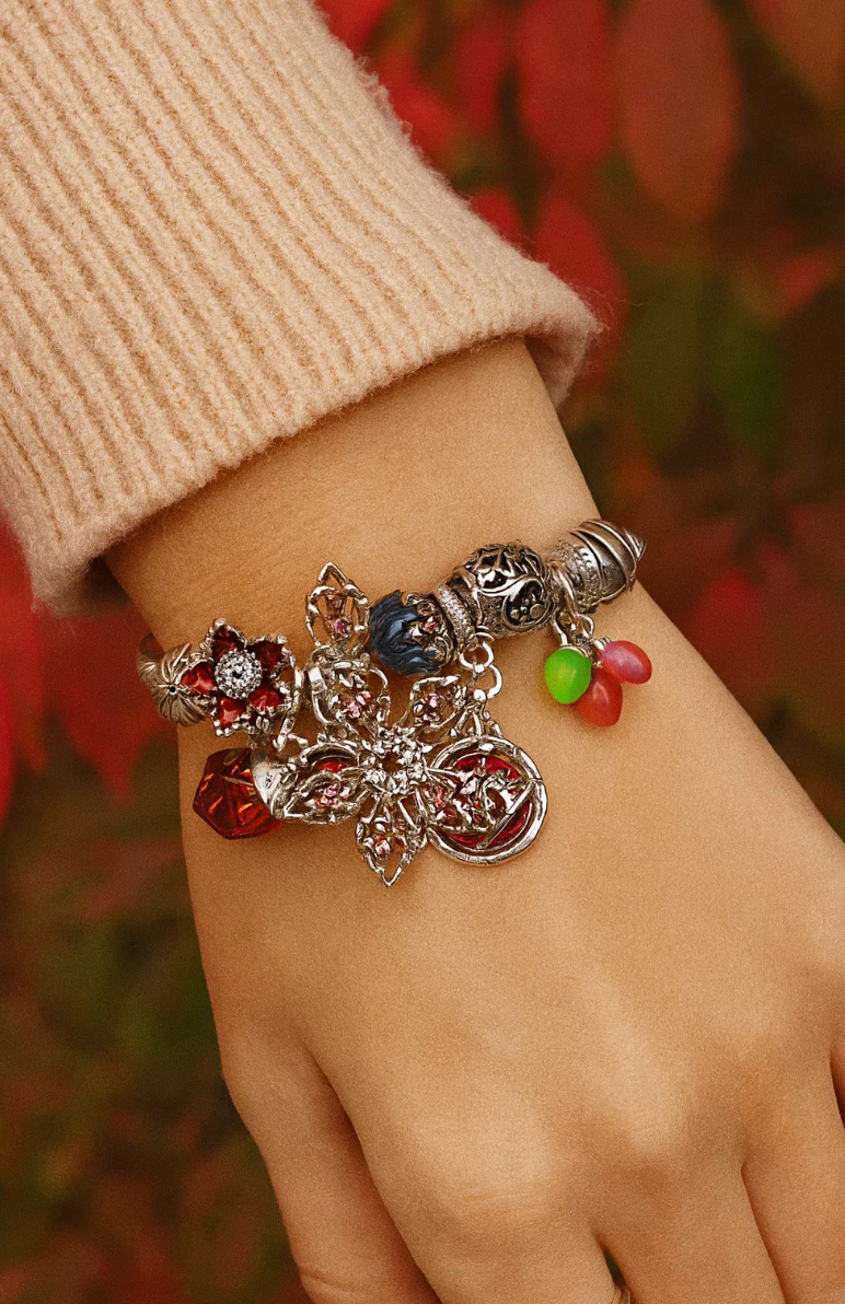 Designed with a tarnish- resistant stainless steel bracelet base featuring colorful enamel and resin charms for a vibrant, long-lasting finish.